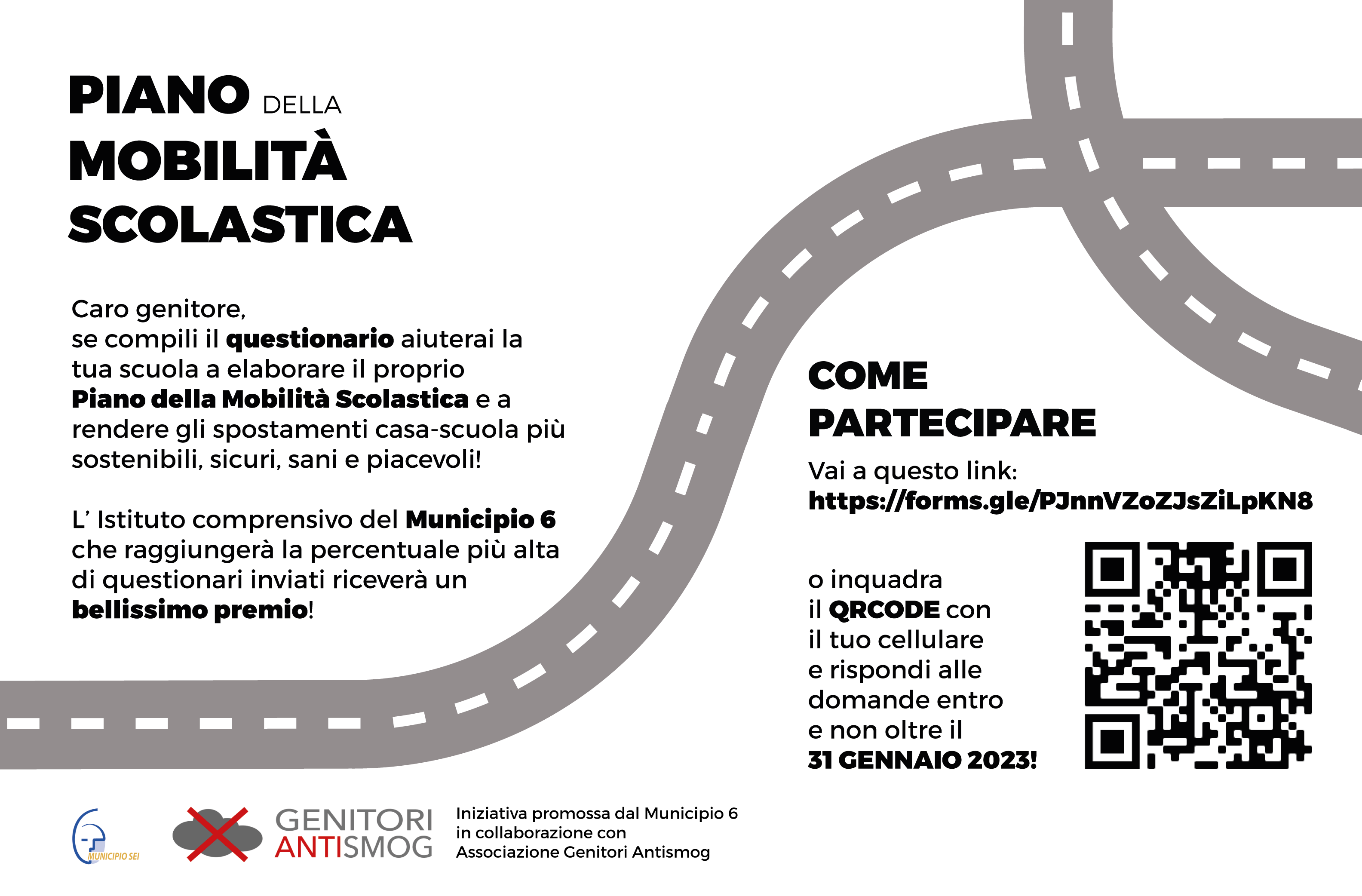 vi invitiamo a compilare il questionario sulla mobilità per aiutare la Scuola a elaborare il Piano della Mobilità Scolastica, in collaborazione con il Municipio 6.