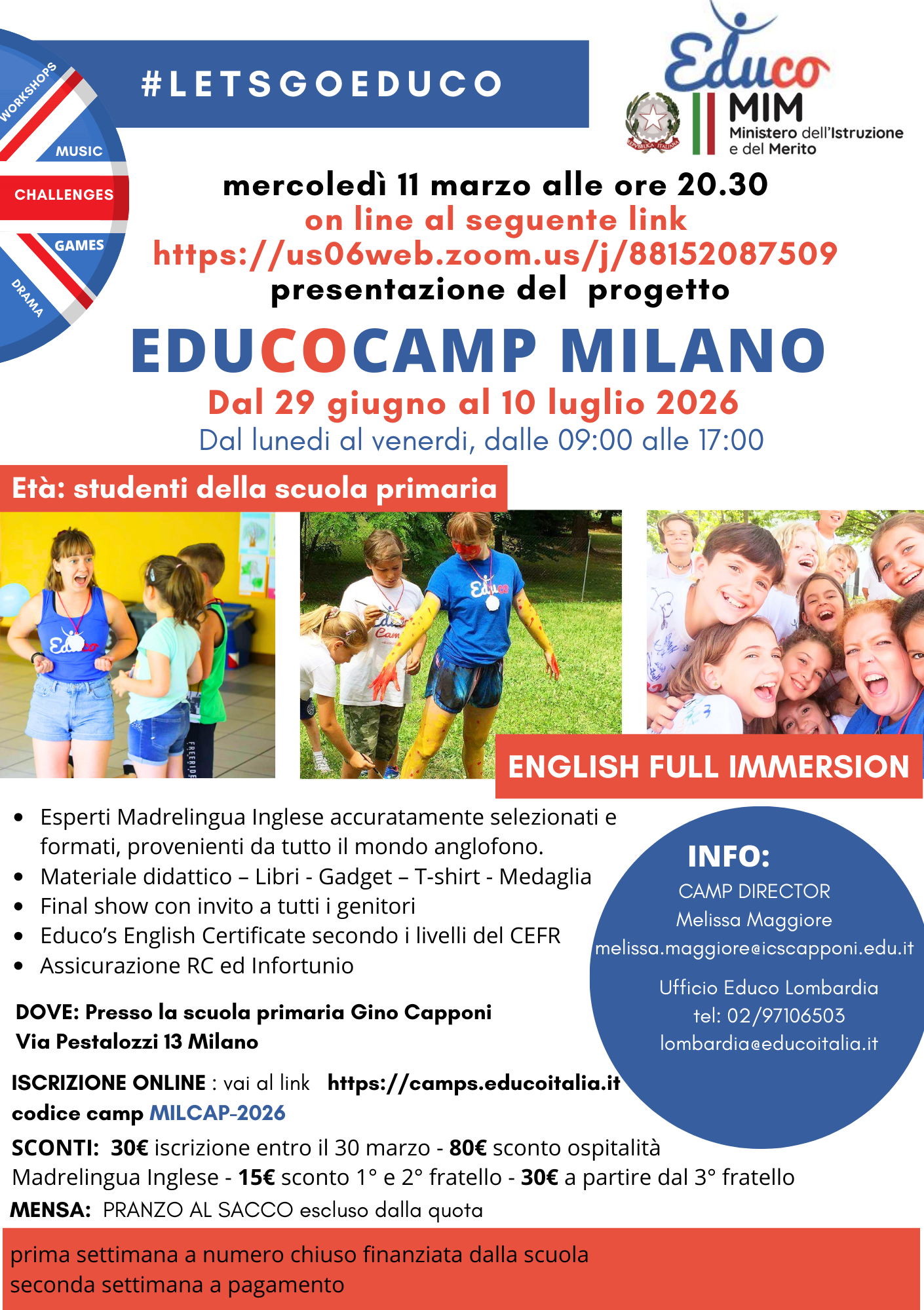 EDUCO CAMP ENGLISH FULL IMMERSION dal 29 giugno al 10 luglio Presentazione del progetto Mercoledì 11 marzo ore 20:30