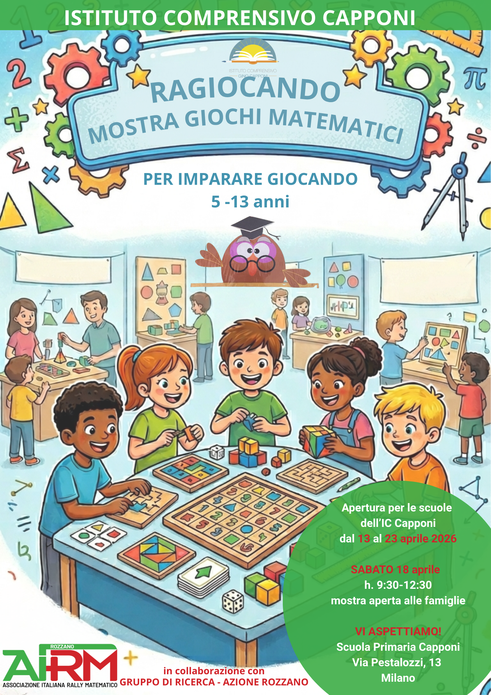 RAGIOCANDO - MOSTRA GIOCHI MATEMATICI Dal 13 al 23 aprile Scuola Primaria Capponi Via Pestalozzi, 13 Una mostra da giocare e non da visitare VI ASPETTIAMO! Documenti RAGIOCANDO _def.png